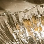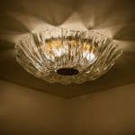 High quality modern textured ice glass flush mounts by Kaiser, circa 1965.