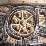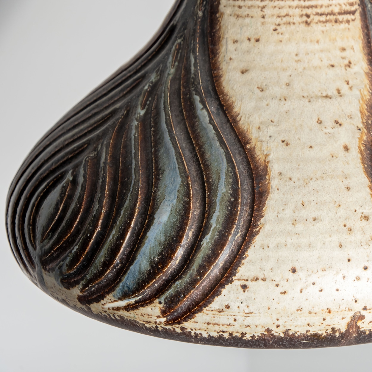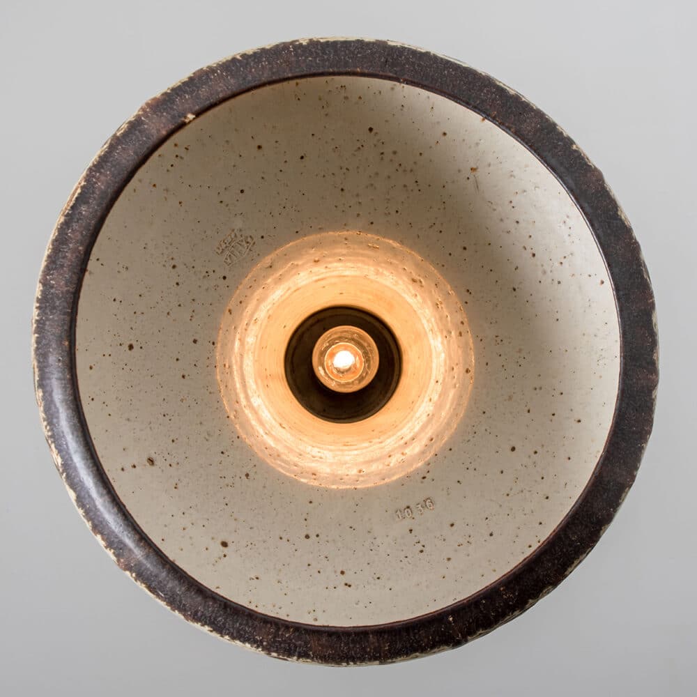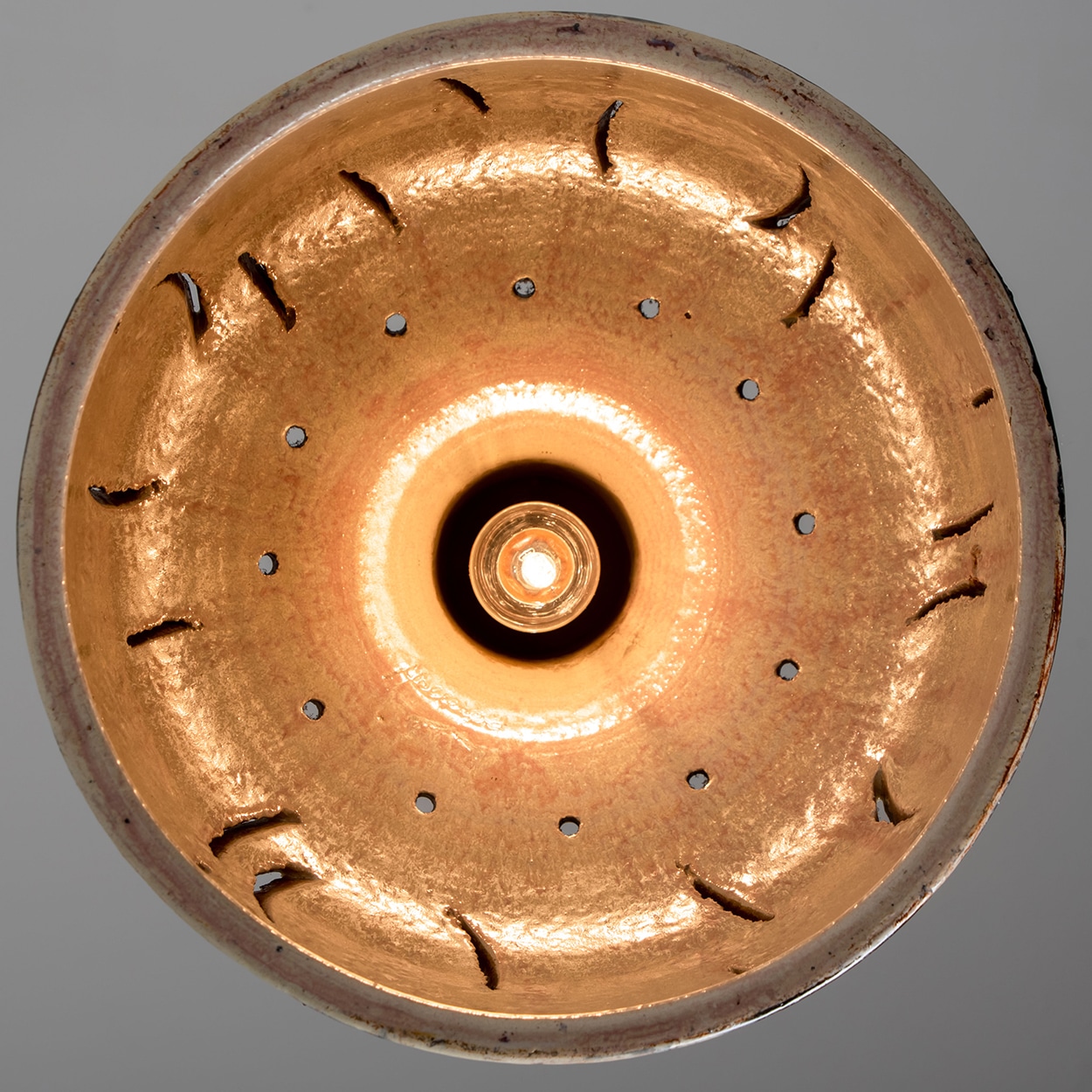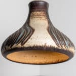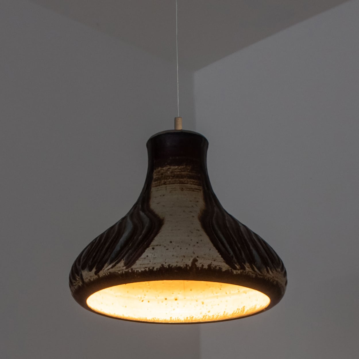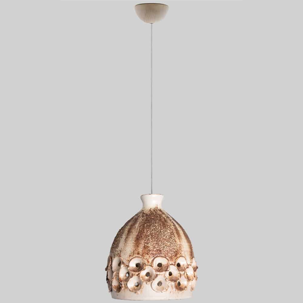 1 of the 3 round ceramic hanging lamps with a beautiful pattern, made with rich colored ceramics, manufactured around the 1960s in Denmark.