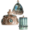1 of 3 Brown Green Ceramic Pendant Lights, Denmark, 1970