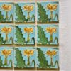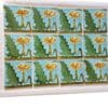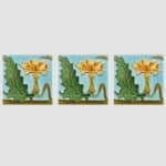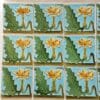 A beautiful relief and deep green and honey yellow colors with blue background. These tiles would be charming displayed on easels, framed or incorporated into a custom tile design.