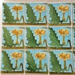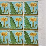 1 of the 18 Honey Yellow Flower Glazed Art Nouveau Relief Tiles, Maison Helman