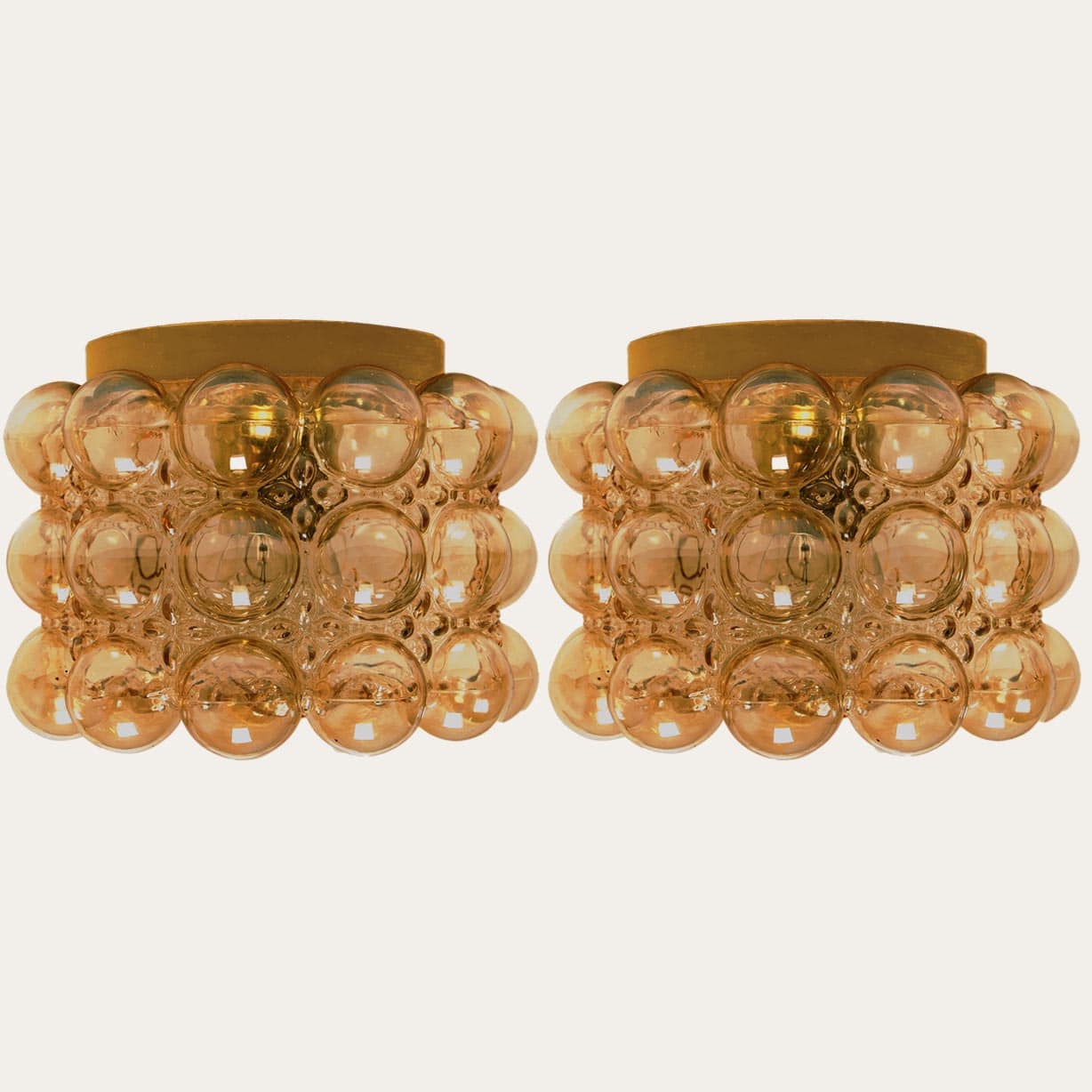 1 of the 2 Amber Glass Flush Mounts Wall Sconce Helena Tynell, Germany 1960