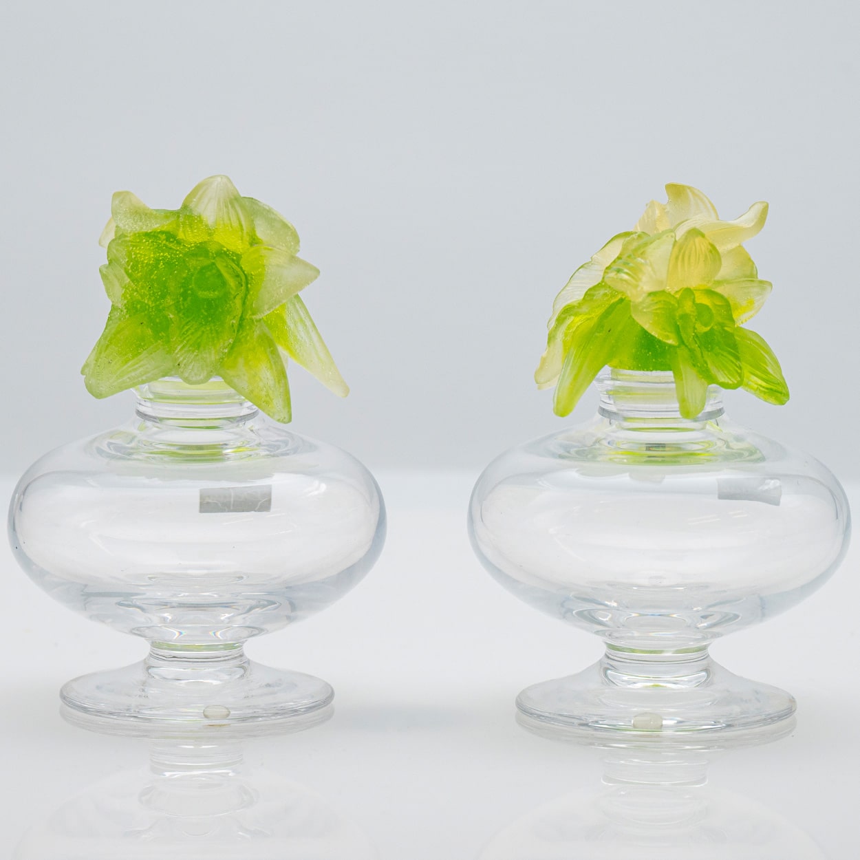 Luxury at its finest, 2 high-end glass flower bottles for Baccarat, France.