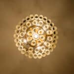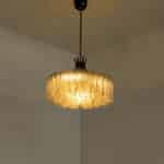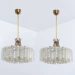 Doria Leuchten was a German lighting manufacturer known for its high-quality, mid-century and modernist glass and chrome light fixtures. The company, active mainly from the 1940s to the 1980s, specialized in elegant designs featuring textured or bubble glass, often paired with metal elements like brass or chrome. Their chandeliers and pendant lamps remain sought-after vintage pieces today.