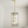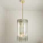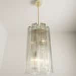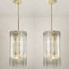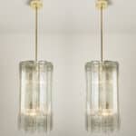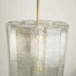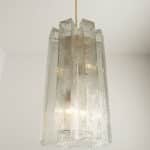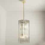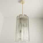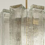 A Doria Leuchten glass chandelier, crafted in Germany during the 1970s, is truly captivating with its unique glass shapes. Eight large cube-shaped hollow glass elements, featuring a ribbed pattern bring a unique ambiance to any room.