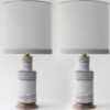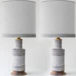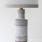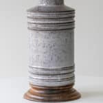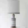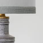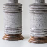 The gray ceramics and the wooden base fit perfectly with the custom made neutral silk lampshade with gray trimming and bronze innershade, illuminates beautifully.