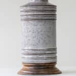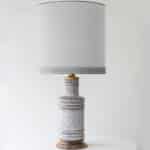 Beautiful ceramic and wooden table/ floor lamp by Bitossi. Custom made neutral silk lampshade by René Houben.