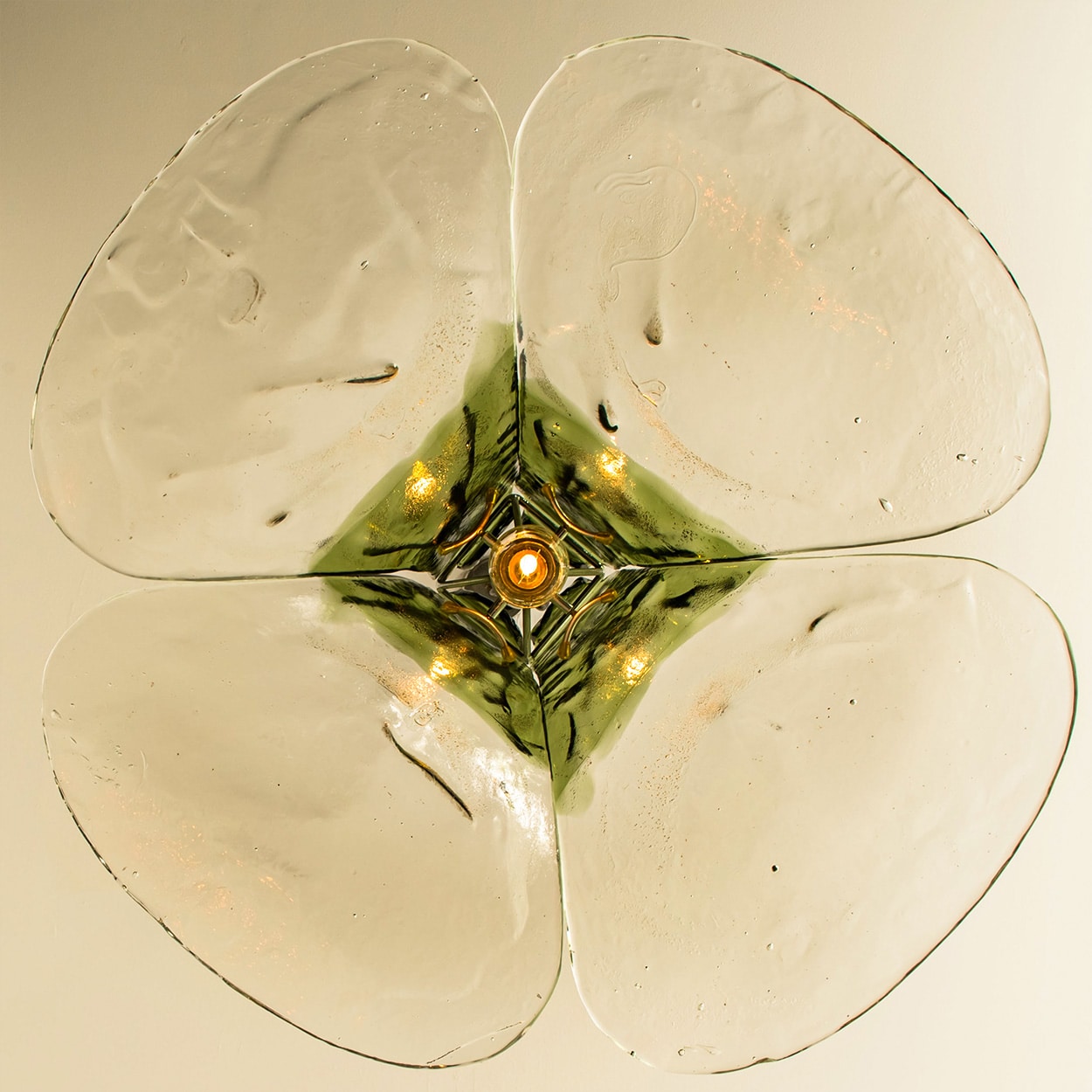 1 of the 2 Green and Clear Glass Pendant Lamp by Carlo Nason for Mazzega, 1960