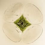 Four crystal clear and purple leaves compose this beautiful handmade piece of thick Murano glass.