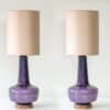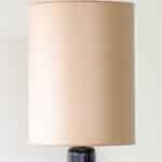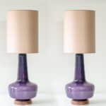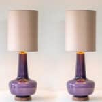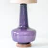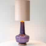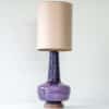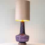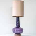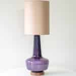 The lilac glazed ceramics with wooden base fit perfectly with the neutral custom made lampshade with rose colored trimming, illuminates beautifully.