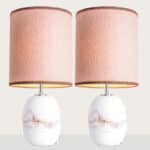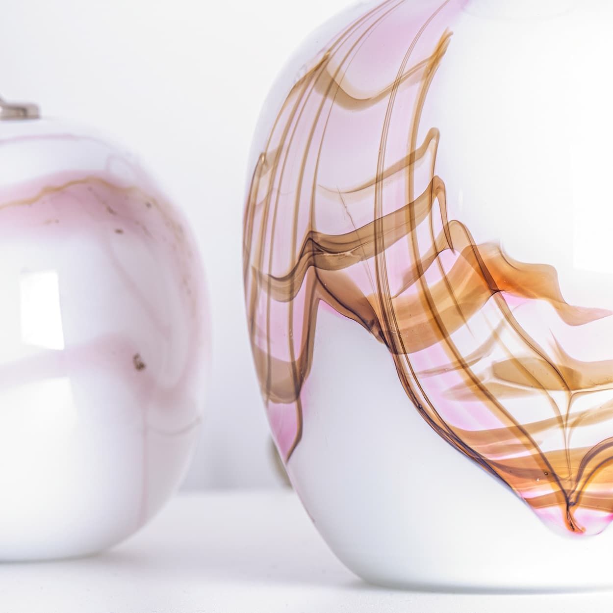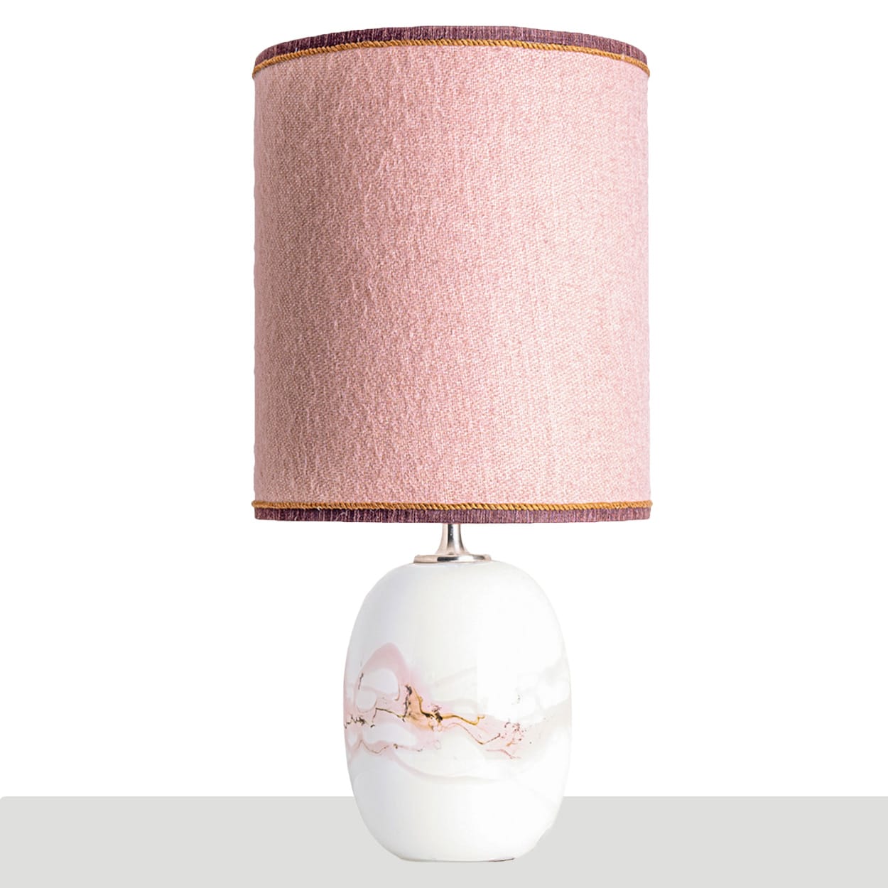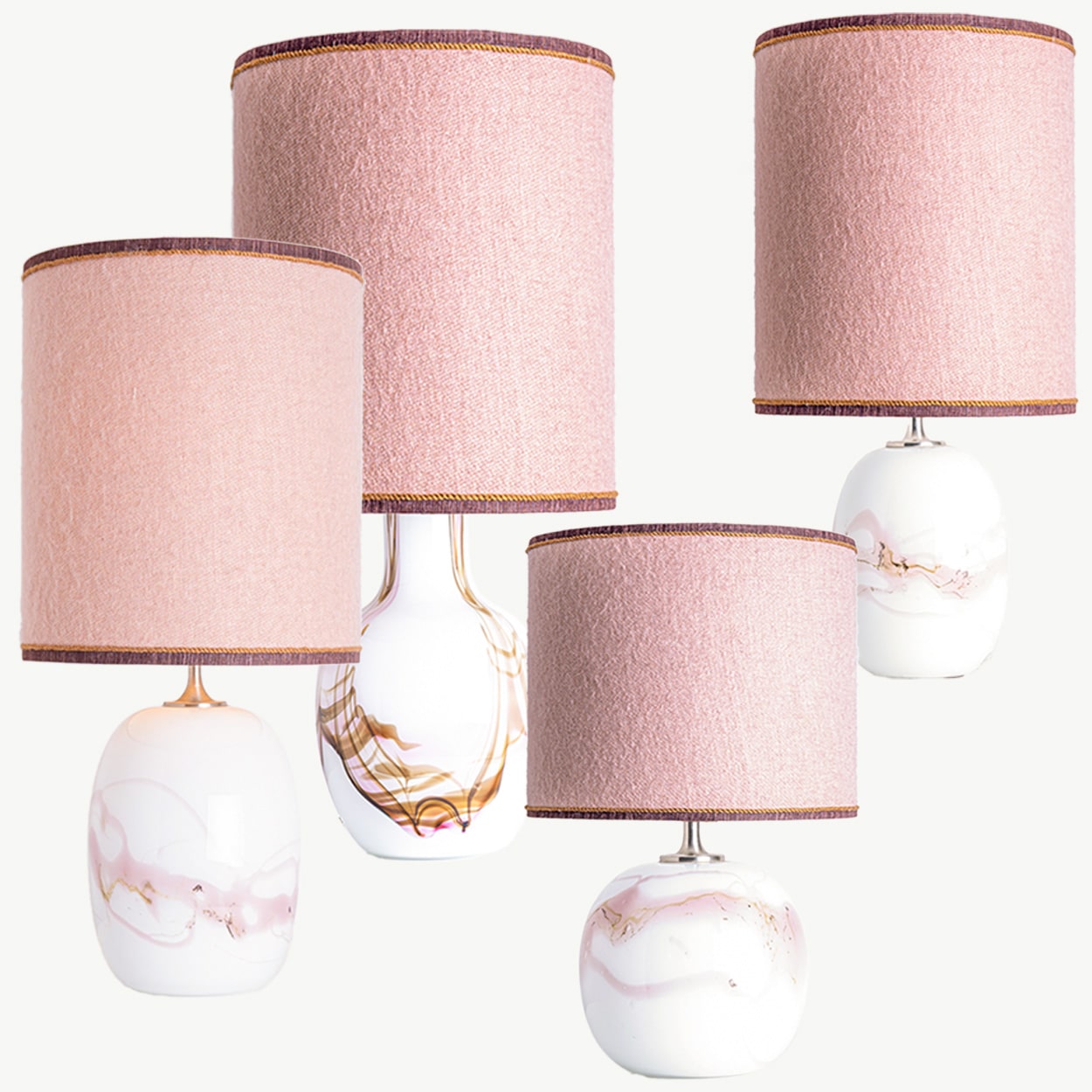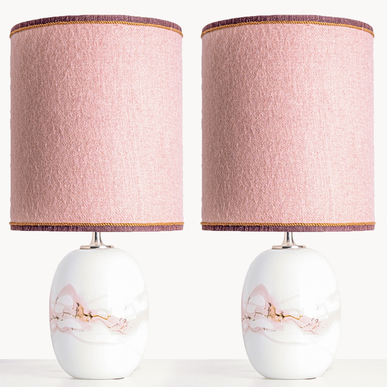 1 of the 2 Holmegaard White Pink Glass Table Lamps, Custom Made Lampshade