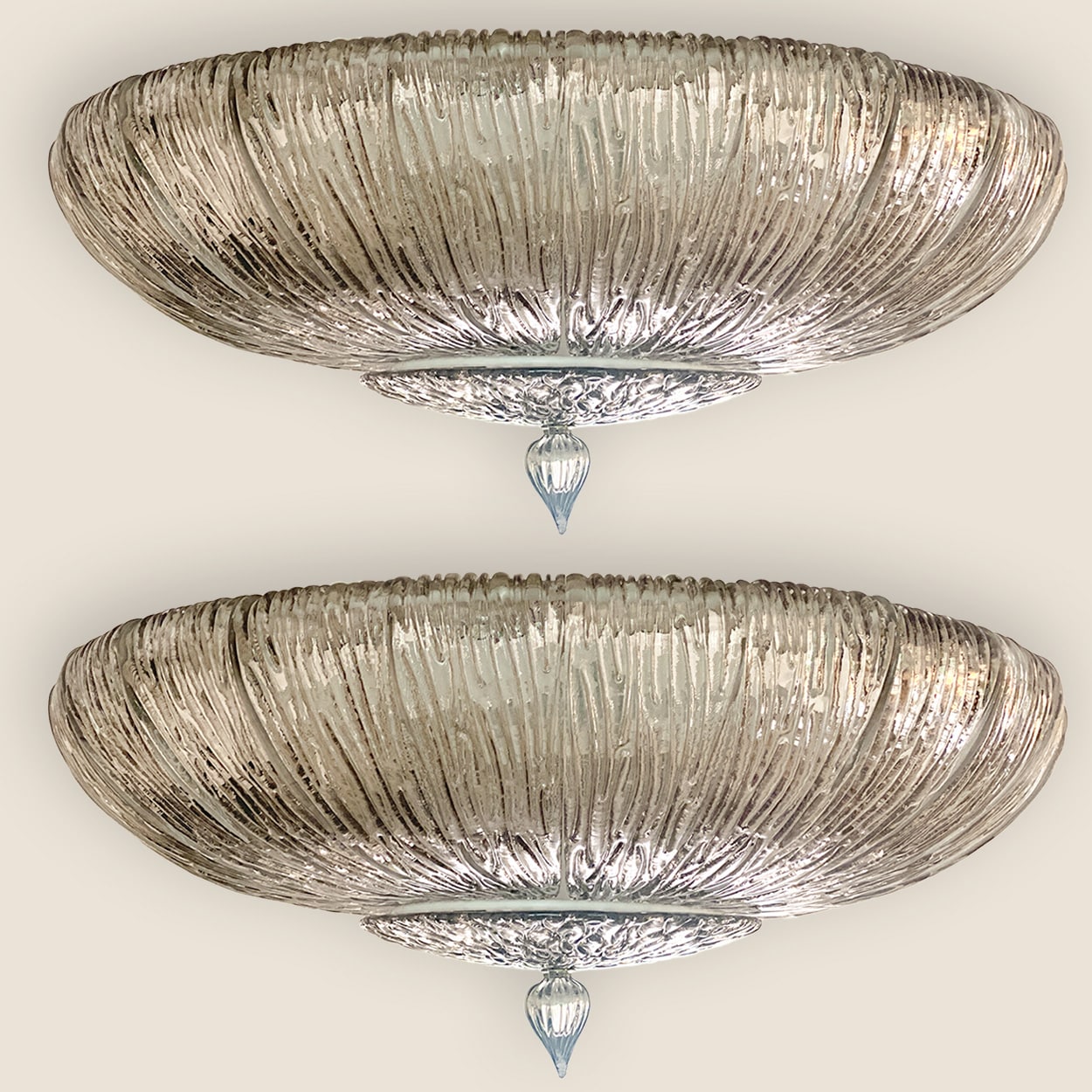 1 of the 2 Large Murano Fumè Brindle Smoked Glass Flush Mounts, Italy