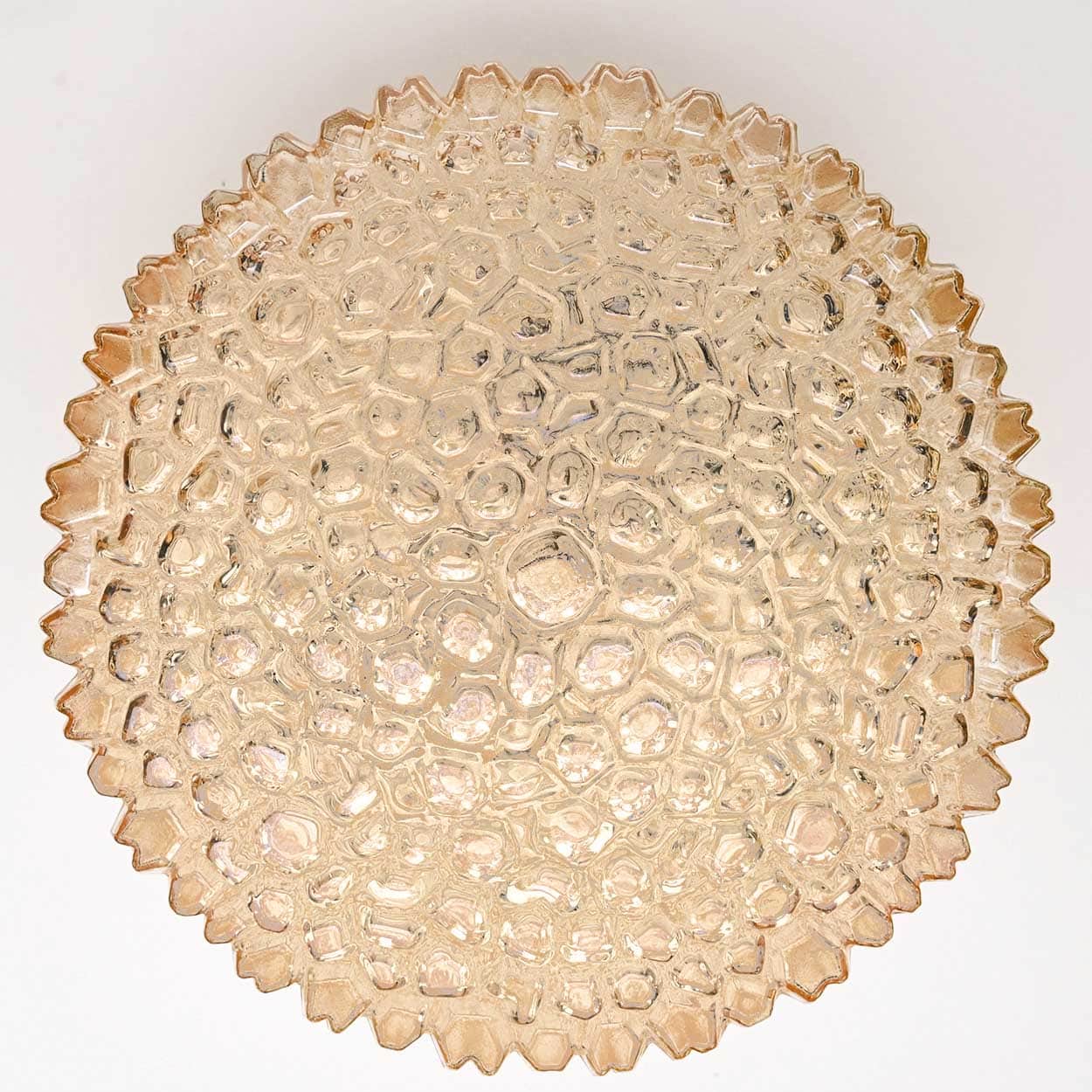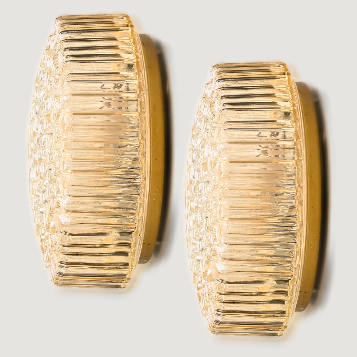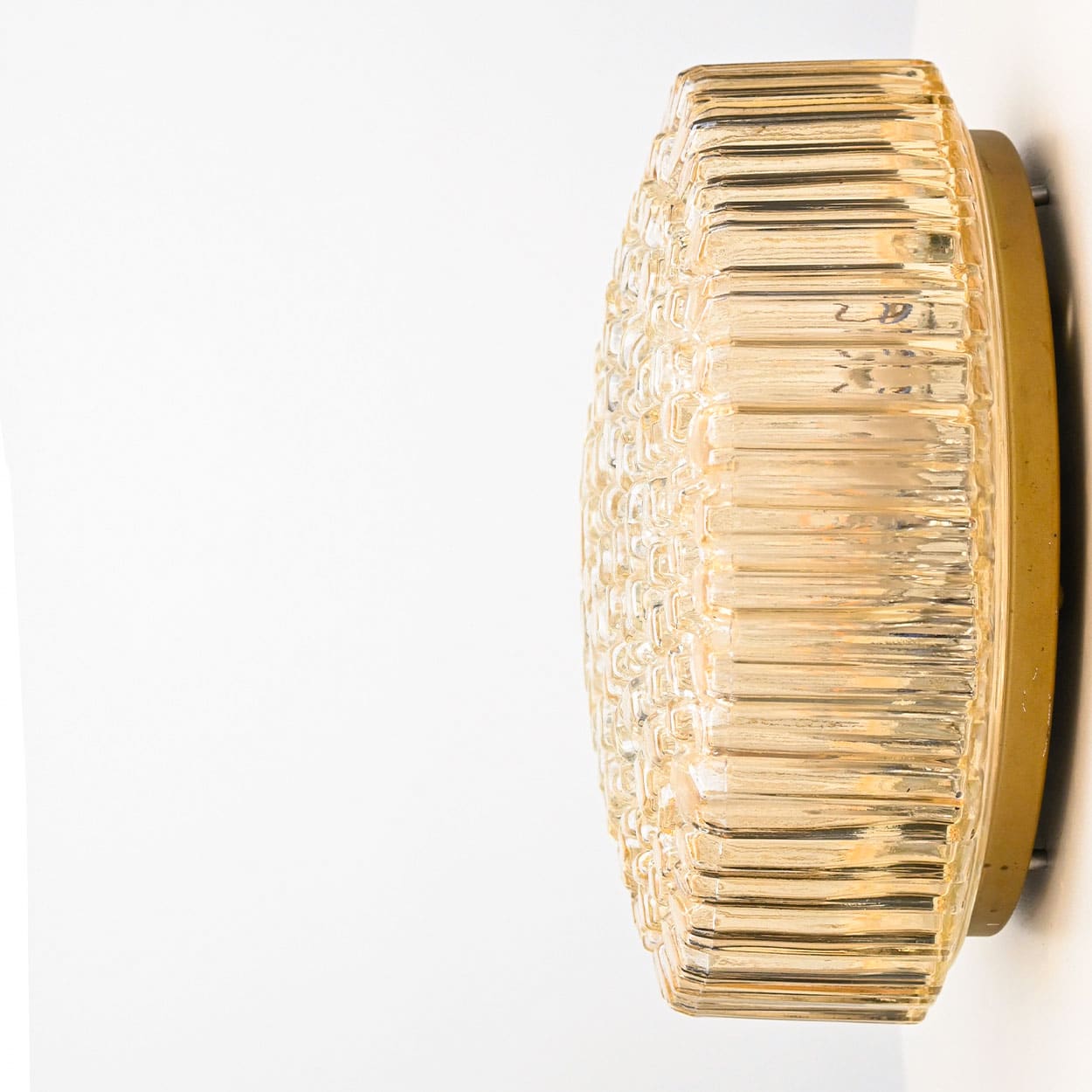 1 of the 2 Medium Round Clear Textured Glass Wall Lights, Limburg, 1970