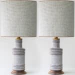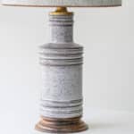 Beautiful ceramic and wooden table/ floor lamp by Bitossi. Custom made gray silk lampshade by René Houben.