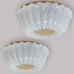 1 of the 2 Milky Ribbed glass wall lights designed in the style of Glashütte Limburg around 1960-1970 in Europe, Germany. The rich textured glass gives a wonderful glow.