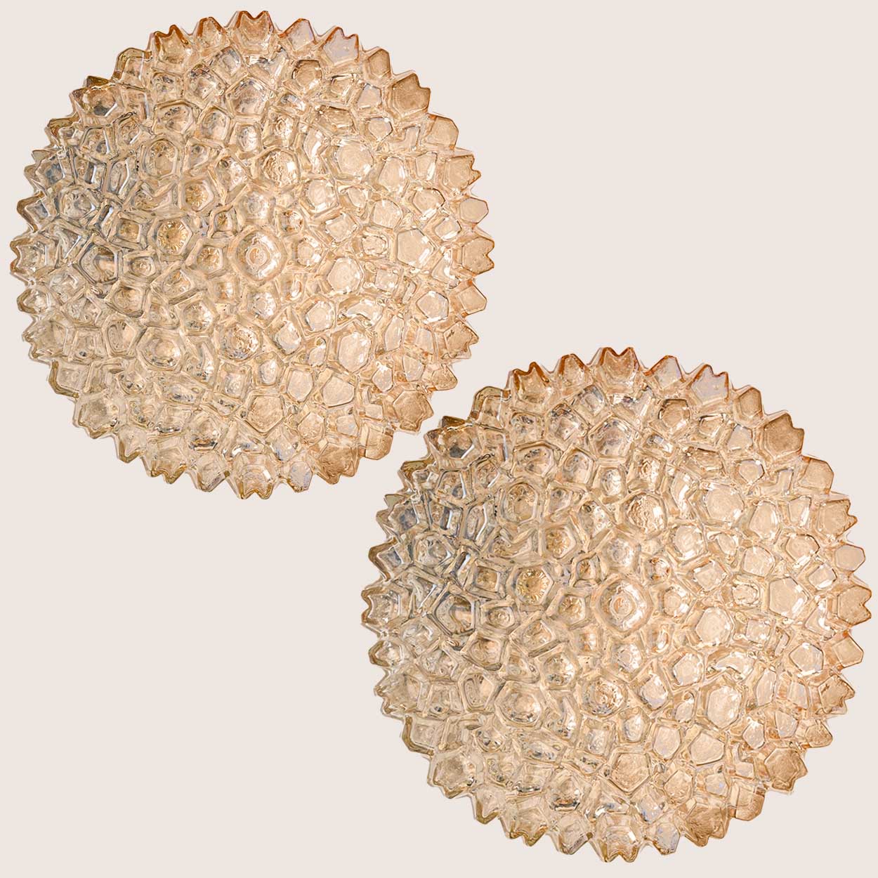 Clear colored textured glass wall light designed in the style of Glashütte Limburg around 1960-1970 in Europe, Germany. The rich textured bubbled glass gives a wonderful glow. There are multiple similarly designed lights available, please check the website for more information.