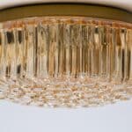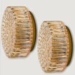 Cleaned and well-wired, in full working order and ready to use. The brass frame is in very good condition. The wall lights can be disassembled and the glass individually wrapped for easy transport. The fixture requires 1 E27 standard bulb. Also LED compatible.