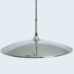 The chrome pendant is a timeless design and suitable in many different interiors. Combinated with a black cord. Also available with brown cord. One canopy supports the pendant. The light is adjustable in height. Great design.