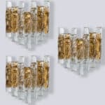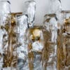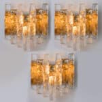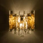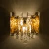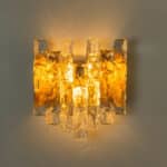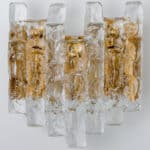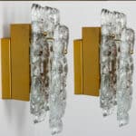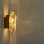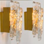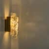 This wall light features lights made of handmade ice glass and brass back plate. The sides refract light beautifully and are perfect for a soft, warm and welcoming glow in the room. With brass screws.