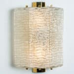 Cleaned and well-wired, in full working order and ready to use. The frame is in very good condition. The wall lights can be disassembled and the glass individually wrapped for easy transport. The fixture requires 2 E14 standard bulbs. Also LED compatible.