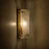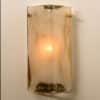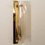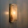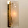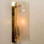 Cleaned and well-wired, in full working order and ready to use. The brass frame is in very good condition. The wall lights can be disassembled and the glasses individually wrapped for easy transport. The fixture requires 1 E14 Standard bulb and is LED compatible.