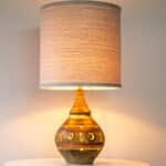 The brown and honey colored ceramics and the geometric details fit perfectly with the custom made (silk) shades.