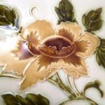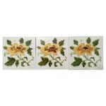 This is an amazing set of antique Art Nouveau handmade tiles with an image of yellow rose in relief on a soft yellow background. These tiles would be charming displayed on easels, framed or incorporated into a custom tile design.