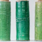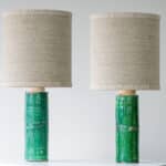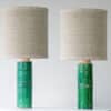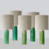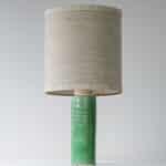 This base with green colored ceramics and a cylidrical shape fits perfectly with the custom made beige lamp shade.