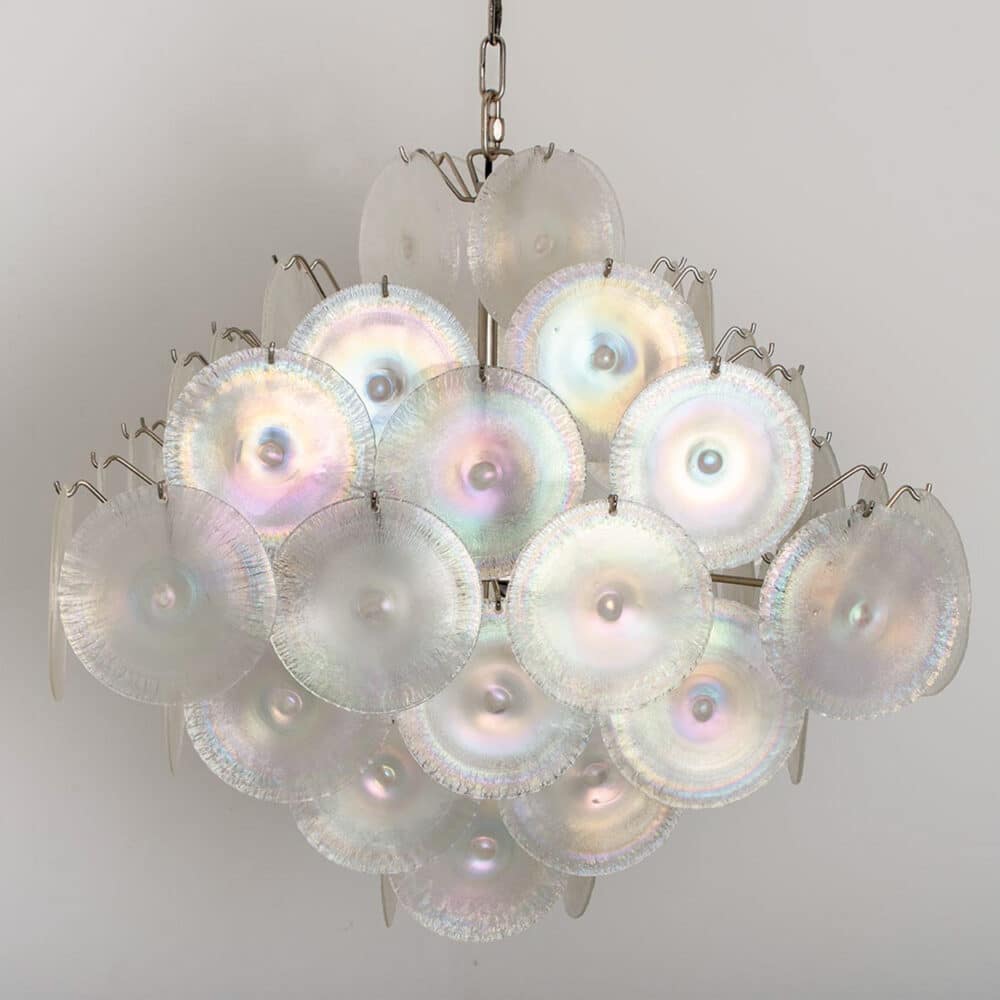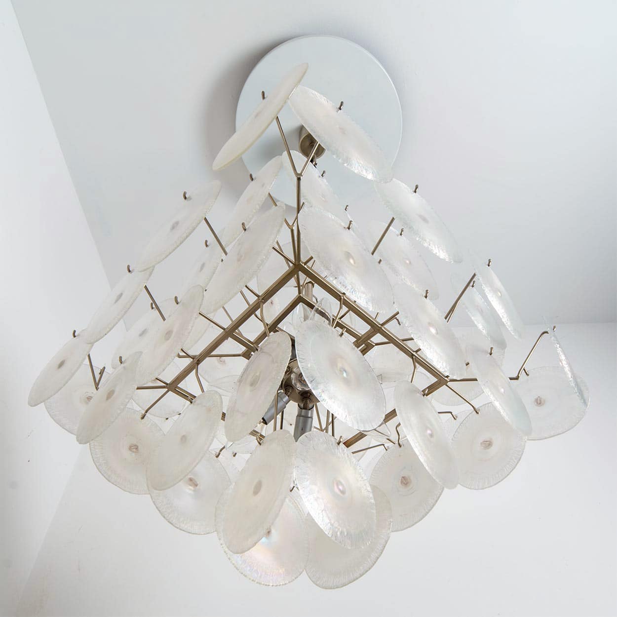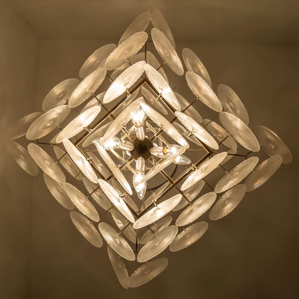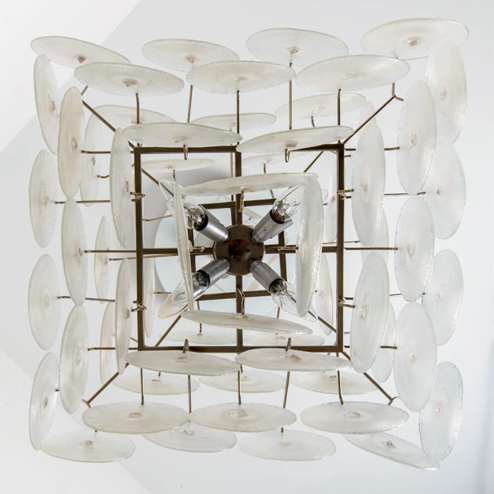 4 Layered Square Oiled Glass discs Chandelier by Nason for Vistosi, Italy
