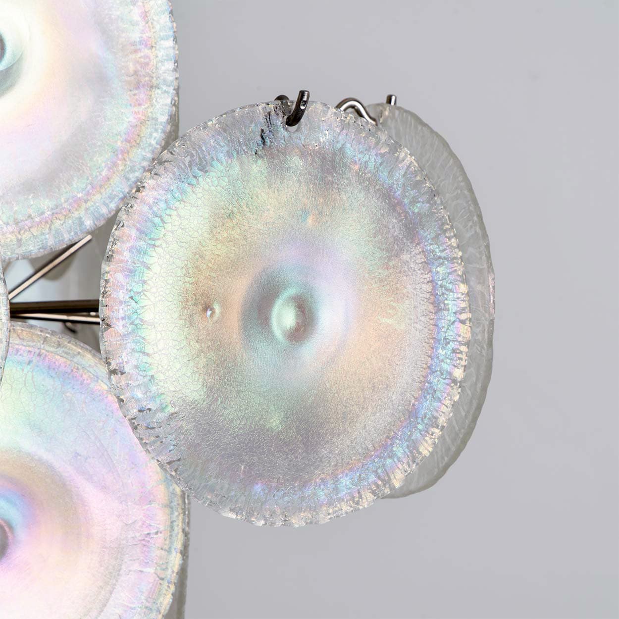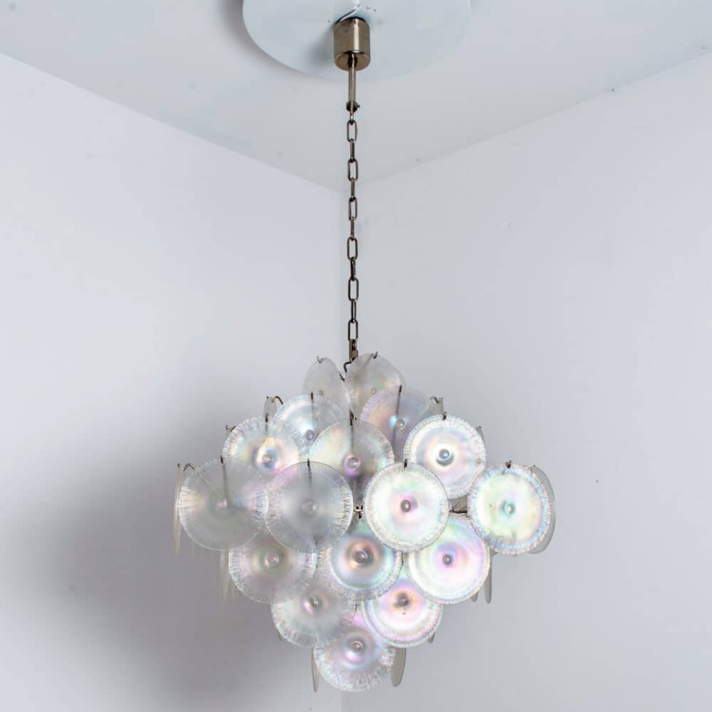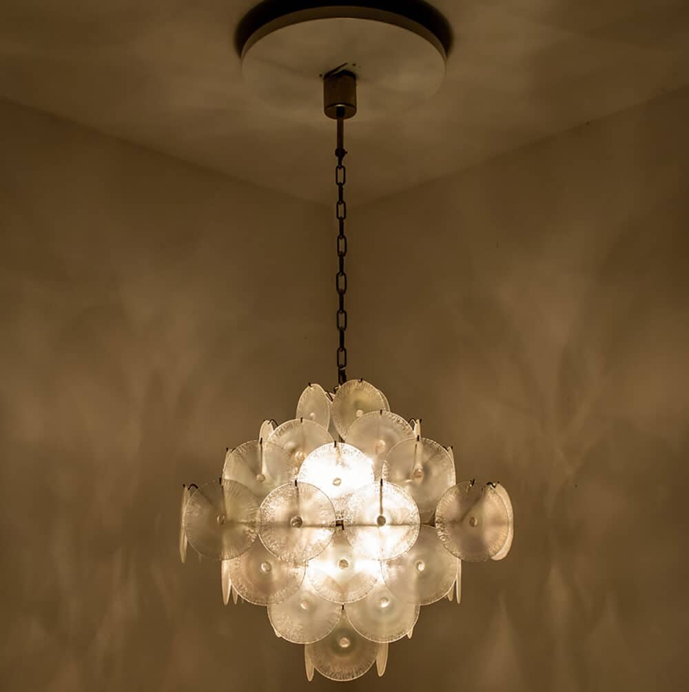 A gorgeous hanging light fixture, by Nason for Vistosi with four layers of round facet oiled glass discs.
