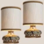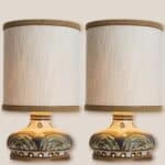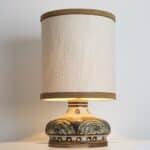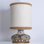 Stunning table lamp with brown and light green ceramics by Axella, manufactured in the 1970s in Denmark. Combined with a new custom made lampshade by R. Houben.