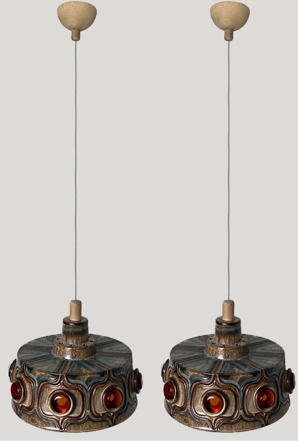 1 of the 3 Axella Ceramic Brown and Blue Ceramic Pendant Light, Denmark, 1970s