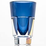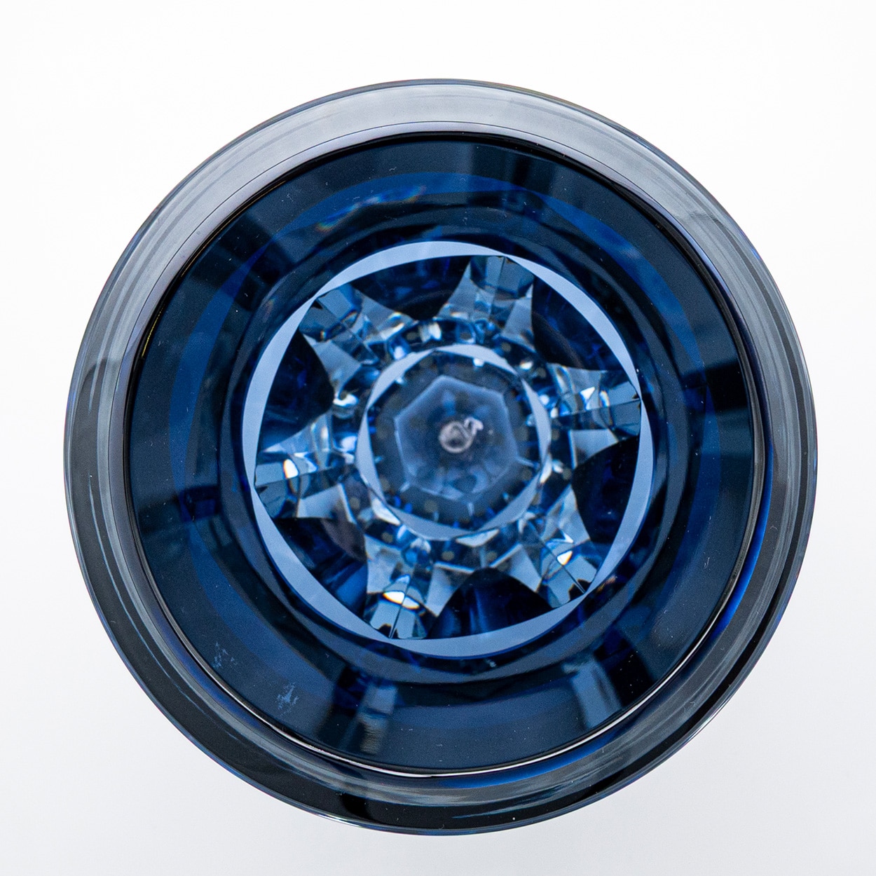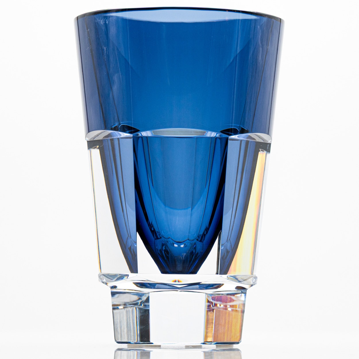 A crystal masterpiece of beautiful proportions, this vase crystallize the extraordinary know-how of the Baccarat craftsmen. The geometric cuts and blue colour and clear crystal in the vase produce a magic visual effect.