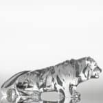 A tiger, sculpted from clear Baccarat crystal, is slowly crawling — a perfect embodiment of grace and power frozen in time. The masterfully cut crystal captures and reflects light, bringing the sculpture to life as if the animal might attack its prey. With its flowing lines and refined details, this piece showcases Baccarat’s exceptional craftsmanship and its ability to transform the elegance of nature into radiant crystal art.