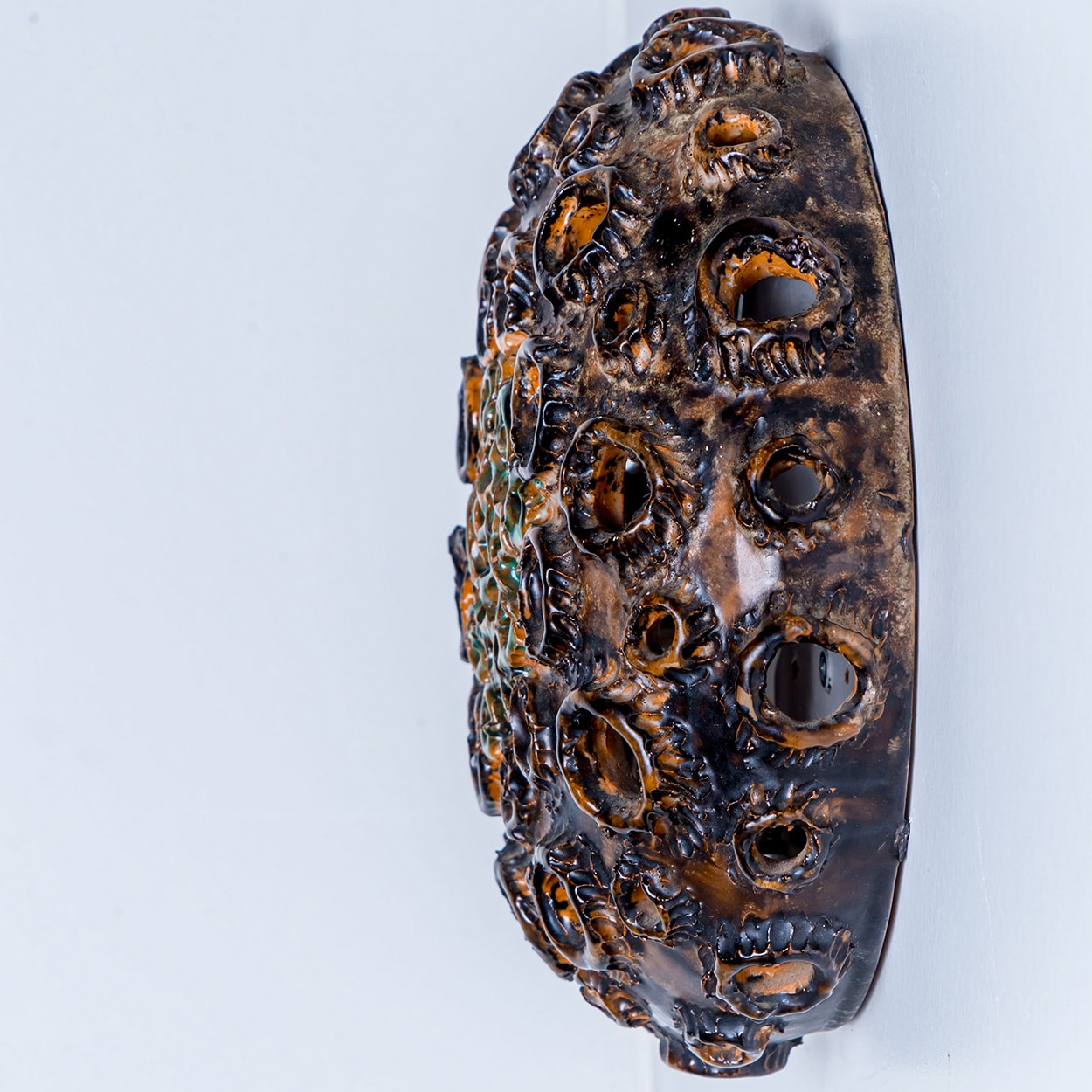 Spectacular circular ceramic wall light, with beautiful accents. Manufactured in Denmark in the 1970s. In excellent condition, in the style of Axella. A beautiful wall light that complements many interiors. Illuminates beautifully.