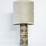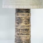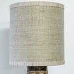 The dark and beige ceramics with beautiful details fit perfectly with the custom made lampshade, illuminates beautifully.