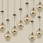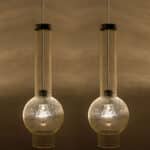 One of the 10 original 1970s high-end tubular lights produced in Germany by Staff Leuchten, 1970 Germany. Heavy quality glass lights with hand blown shades. All original. Combined with a beige cord, also possible with other cords, see images.