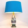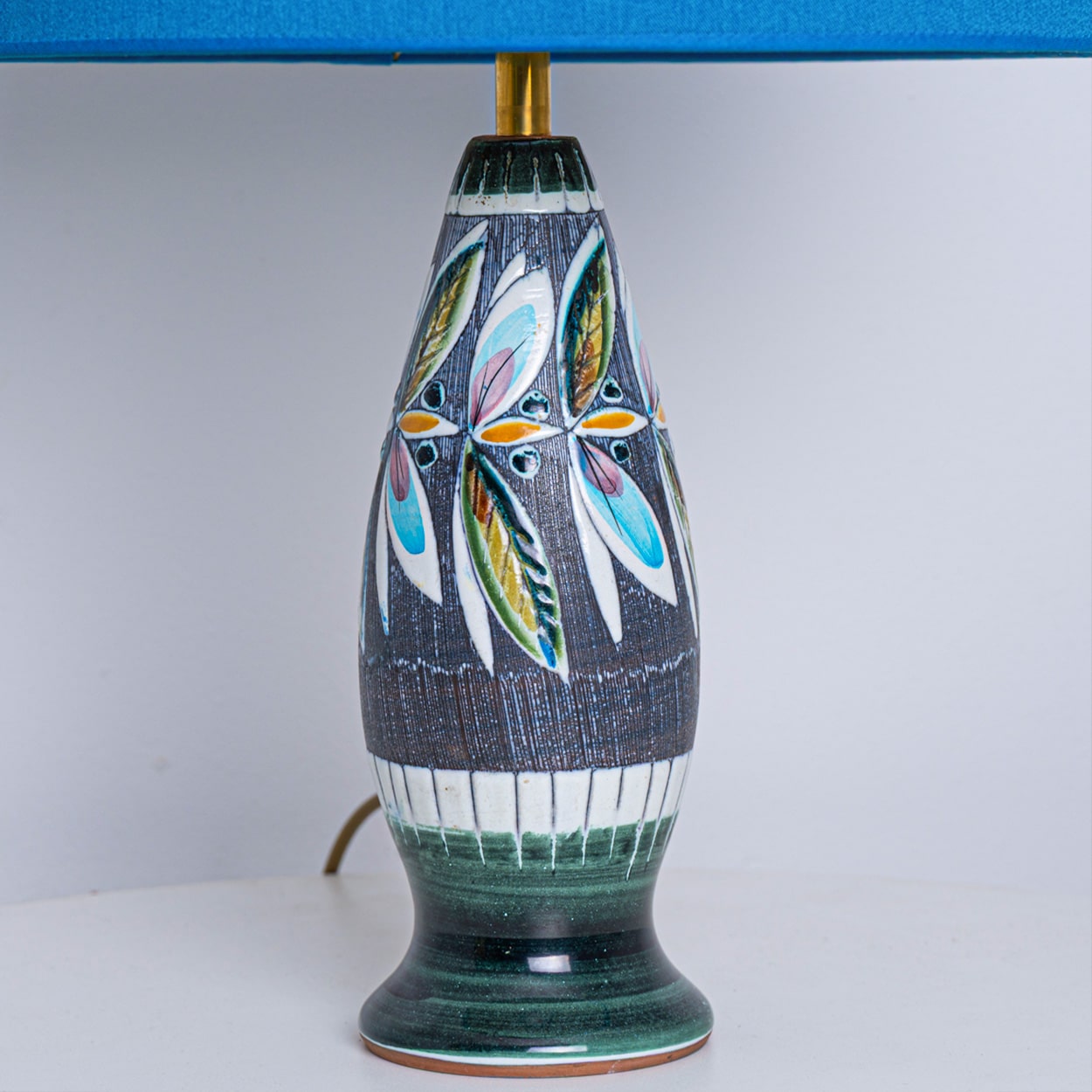 A rare ceramic table lamp, made by Tilmans Zweden 1970s. Sculptural piece, made of handmade ceramic with a new custom made matching lamp shade. The base has a beautiful floral pattern with vibrant colours.