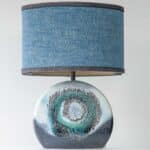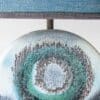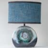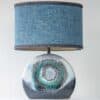 Large Blue Teal Glazed Ceramic Lamp, Custom Made Blue Lampshade by R. Houben