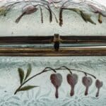 An art glass bonbonnière from enamelled art glass with beautiful flowers on it.