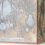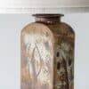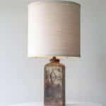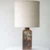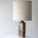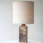 Stunning cube floor/table lamp with brown and beige glazed and textured ceramics, manufactured in the 1970s in Denmark. Combined with a neutral lampshade, made by R. Houben.