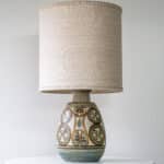 Beautiful ceramic table lamp by Noomi Backhausen for Soholm, Denmark 1960s. Combined with a custom lampshade made by Rene Houben.