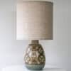 The green and brown ceramics with the custom-made shade complement each other very well, with the shade and base perfectly matching, and illuminates beautifully.