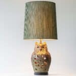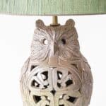 This base in the shape of an owl fits perfectly with the green custom shade with brown trimming. Illuminates beautifully. The lampbase also lightens up wen the light is switched on (Two E27 lights bulbs are required).