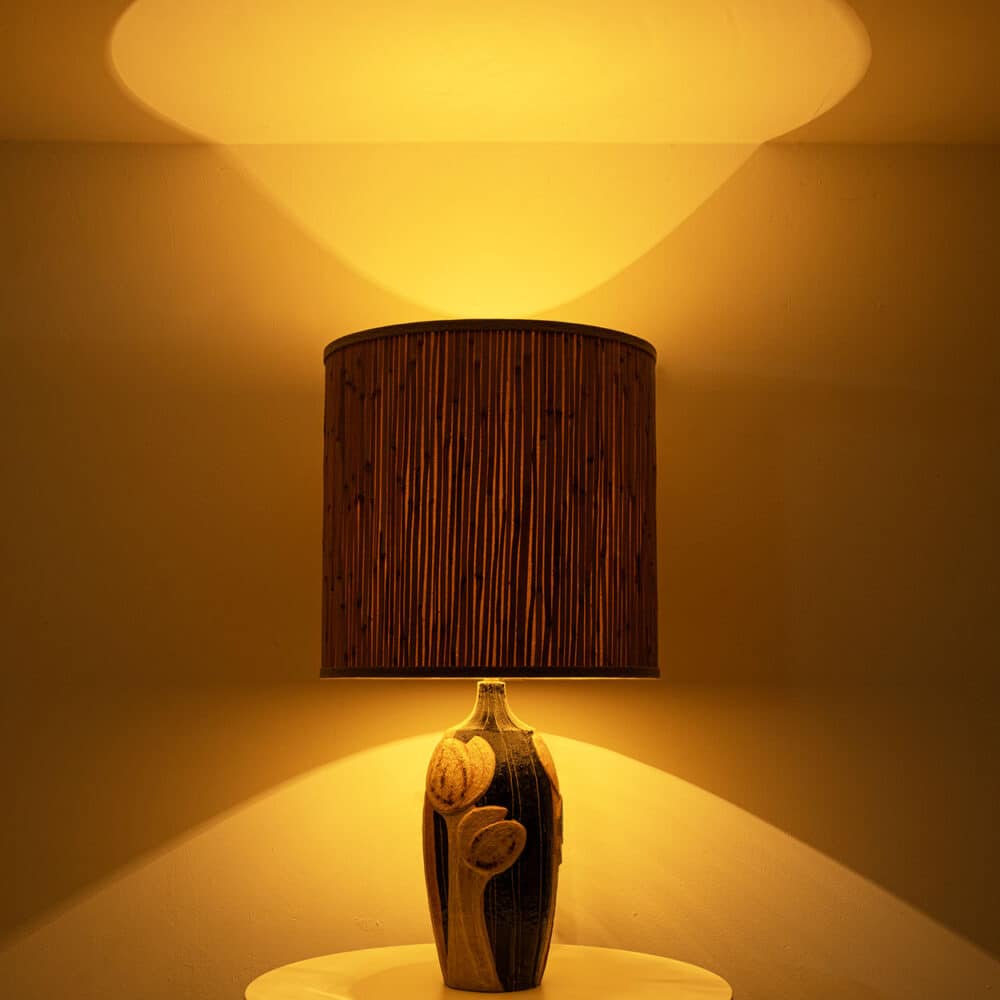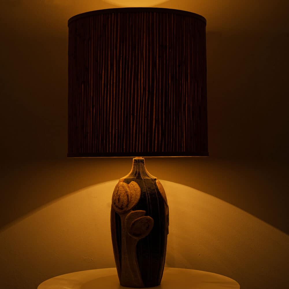 The warm colors of the ceramic with the custom made shade complement each other very well and illuminate beautifully.
