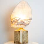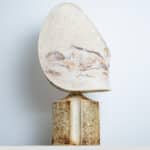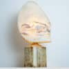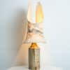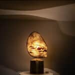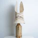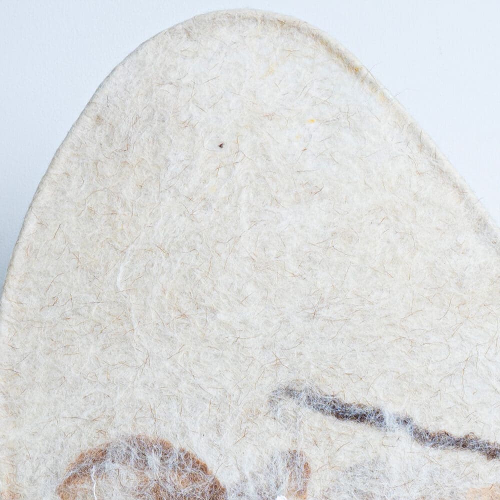 This unique lampshade is crafted from natural felt, giving it a soft yet structured appearance. The surface is enriched with handwoven threads, creating subtle lines and organic textures that make each piece truly one of a kind. Its sculptural form is designed entirely by hand. Illuminates beautifully.