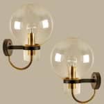 Large quantity of beautiful hand blown clear glass wall lights with brass details. Designed and manufactured by Glashütte Limburg, Germany around 1975.