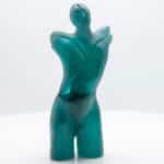 The sculpture – made out of art glass – is a silhouette in turquoise colors. A beautiful sculpture.