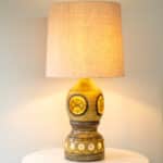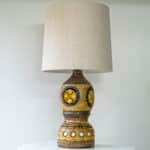 The brown ceramics and the warm colored details fit perfectly with the custom made silk shade and illuminates beautifully.