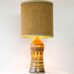 Georges Pelletier Brown Gold Ceramic Lamp, Custom Silk Lampshade by R. Houben